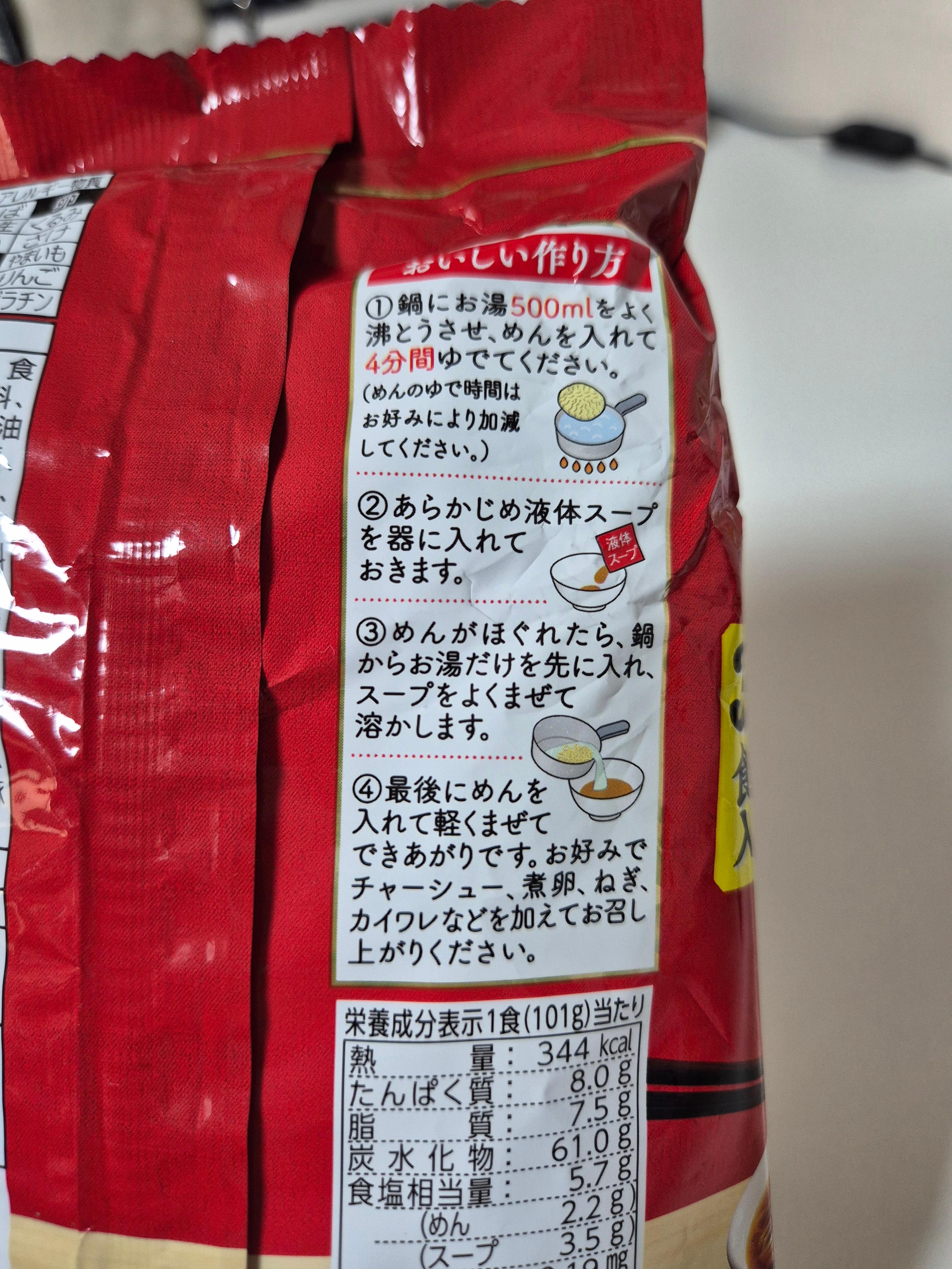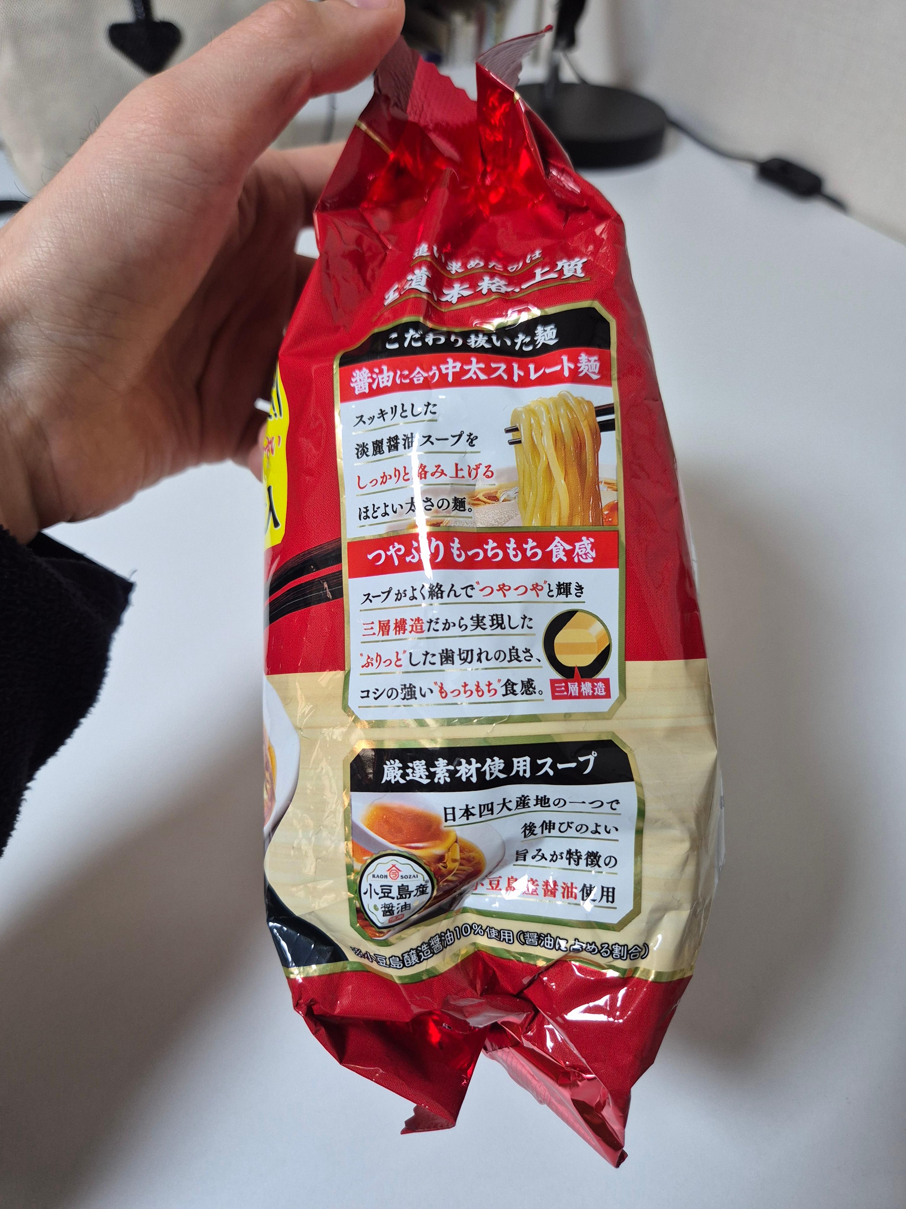 봉투가 빨개서 매운 라면 일 것만 같지만, 간장(소유) 라멘입니다.